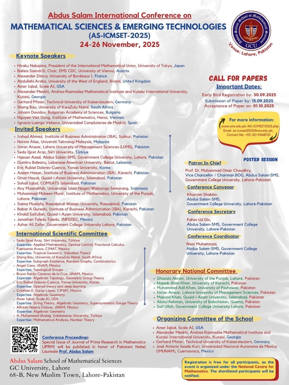 The Abdus Salam International Conference on Mathematical Sciences & Emerging Technologies (AS-ICMSET-2025) aims to bring together leading researchers, industry experts, and early-career scientists from across the globe to exchange ideas, present new results, and foster collaborations across the spectrum of mathematical sciences.